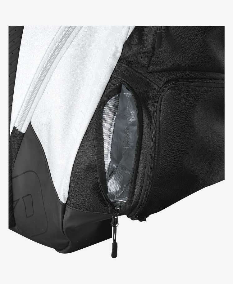 The DeMarini Voodoo XL Backpack is designed for players who love options. An expanded main compartment fits your helmet, glove and gear comfortably. A pair of molded neoprene bat sleeves allows you to take two of your favorite sticks with you wherever you're headed - and the bag is designed to hold a third bat if needed. Hang your arsenal from the dugout fence with a durable J-style hook, store your valuables in a fleece-lined pocket as you take your full arsenal on the go this season.