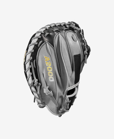A backstop’s companion behind the dish, the A2000® M2 catcher’s mitt includes integrated thumb protection to help players through the grind of countless pitches in the bullpen or on the field. This 33.5” catcher’s mitt offers the size required to block balls in the dirt while still empowering catchers with the control to frame pitches on the edge of the strike zone. Black and Grey Pro Stock® leather delivers the unmatched feel and relentless durability required behind home plate, and new gradient Bold Logos in Yellow and White bring a modern look to A2000.