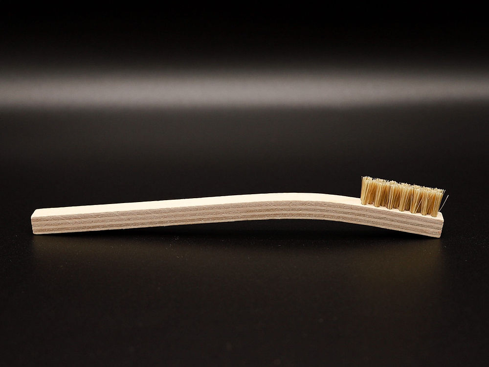 The curved head of this brush allows for more ergonomic use of the brush while cleaning, helping you get into the difficult to reach parts of the glove.