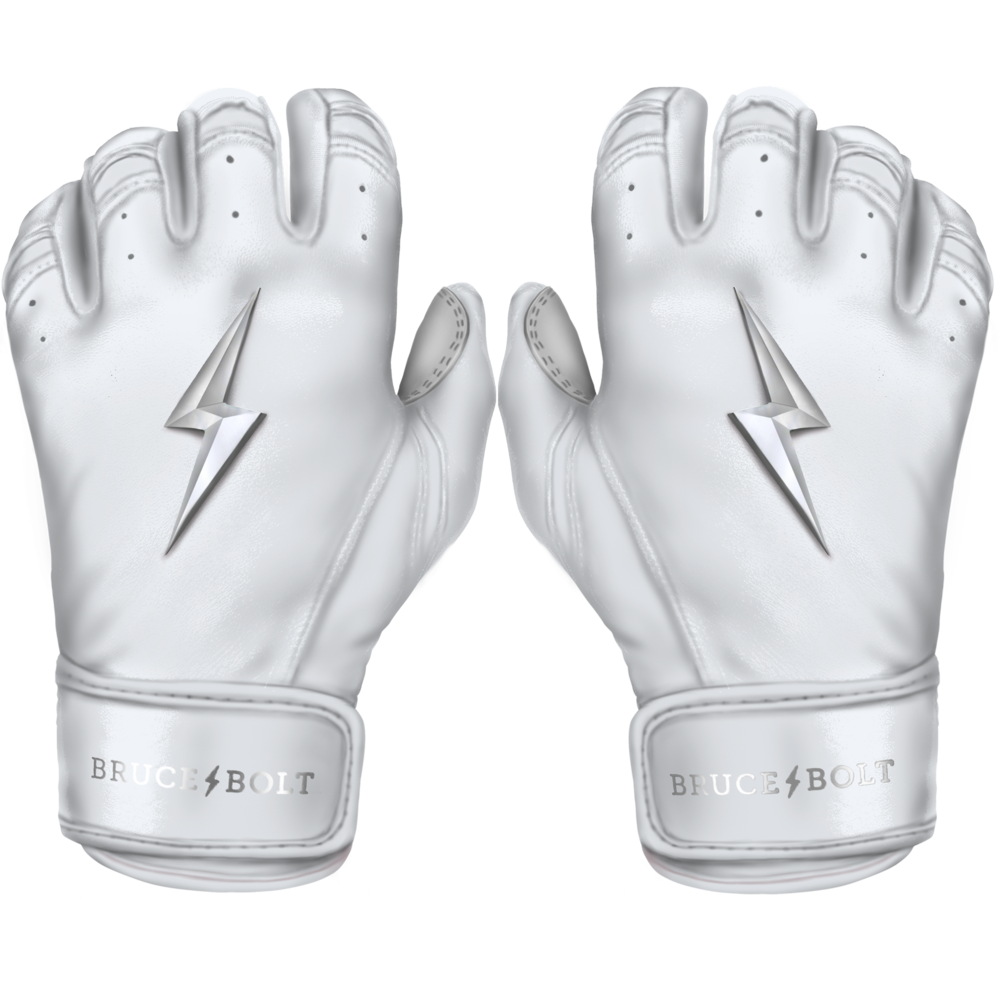 HIGHEST QUALITY, MOST DURABLE BATTING GLOVE IN BASEBALL: Each pair of BRUCE BOLT batting gloves are handmade by skilled craftsmen using only the highest quality 0.9mm Cabretta leather and stitching techniques which makes our gloves buttery soft but more durable than any other glove on the market.