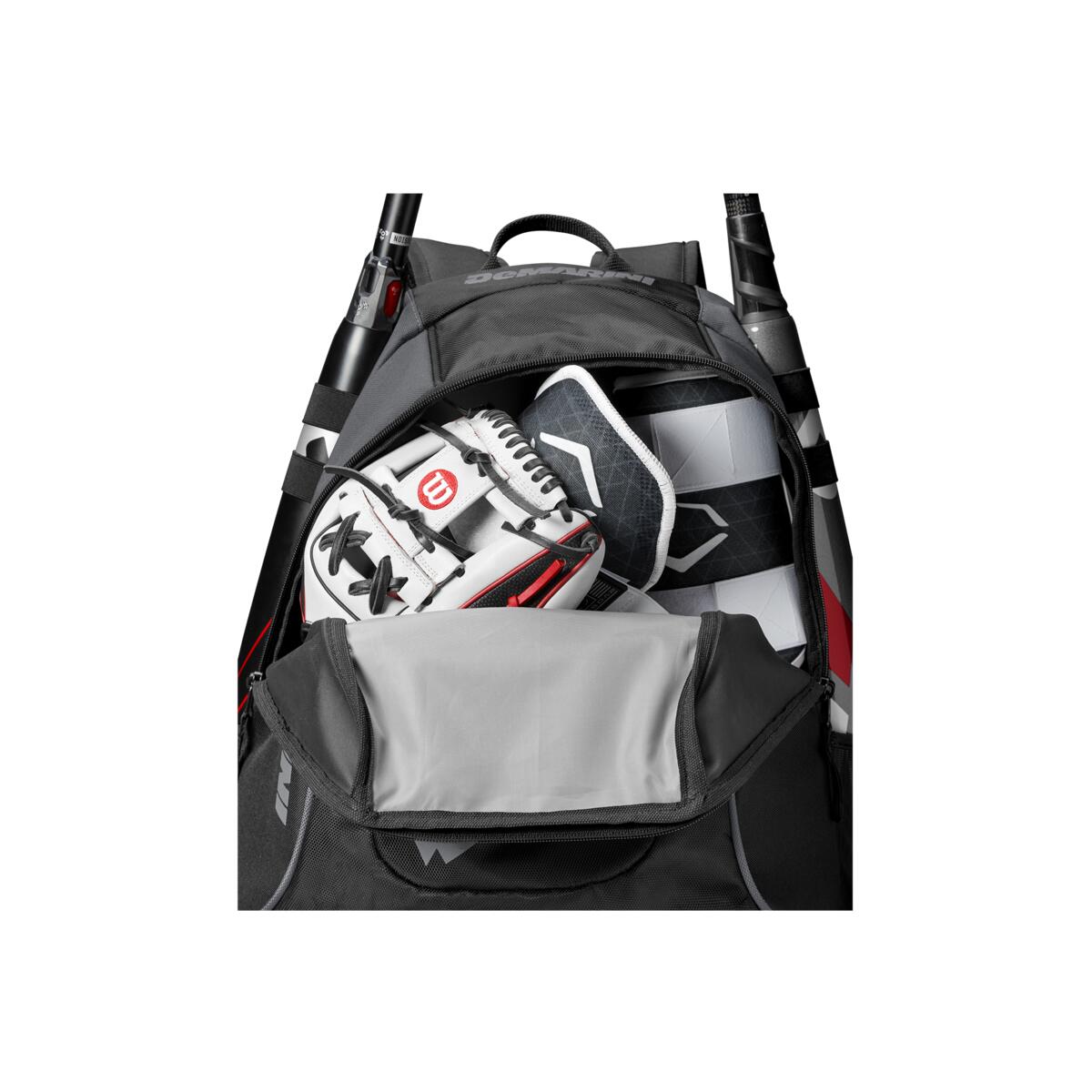 Designed for the serious ballplayer, the Sabotage Backpack from DeMarini has a little bit of everything. Two mesh bat sleeves can double as water bottle holders and a large main compartment houses all your gear, helmet and glove. A separated lined shoe compartment helps keep your gear as fresh as your game and an integrated fence hook makes storing your bag in the dugout a breeze.