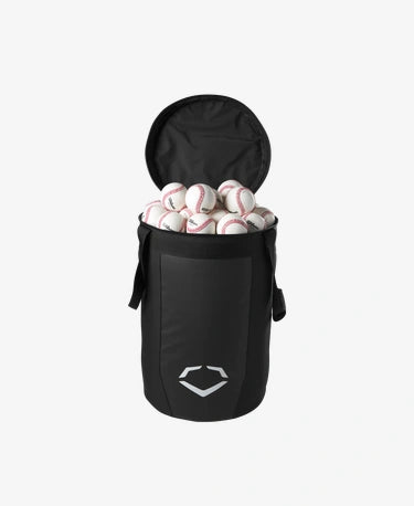 Stay well stocked during batting practice or fielding drills with the EvoShield Ball Bag, designed to carry up to 9 dozen baseballs or 4 dozen softballs for practice or game use. The Ball Bag is crafted with durable nylon to carry the weight of dozens of balls, and accessible side handles and shoulder straps make it easy to carry the bag all over the field. The bag’s water resistant bottom protects balls from rain or wet grass while the perforated panels improve air flow inside the bag.