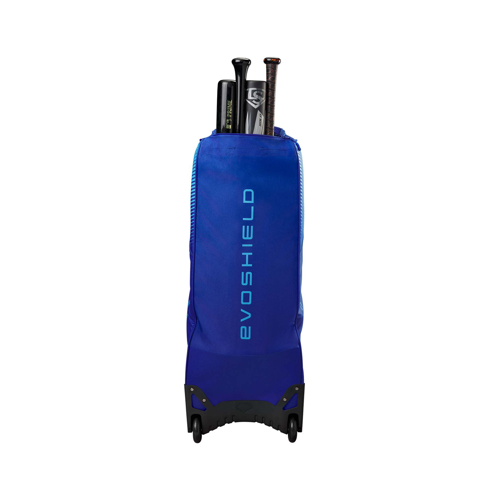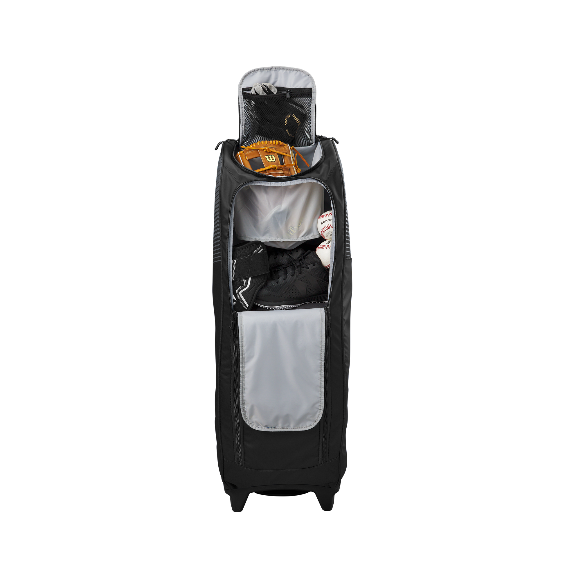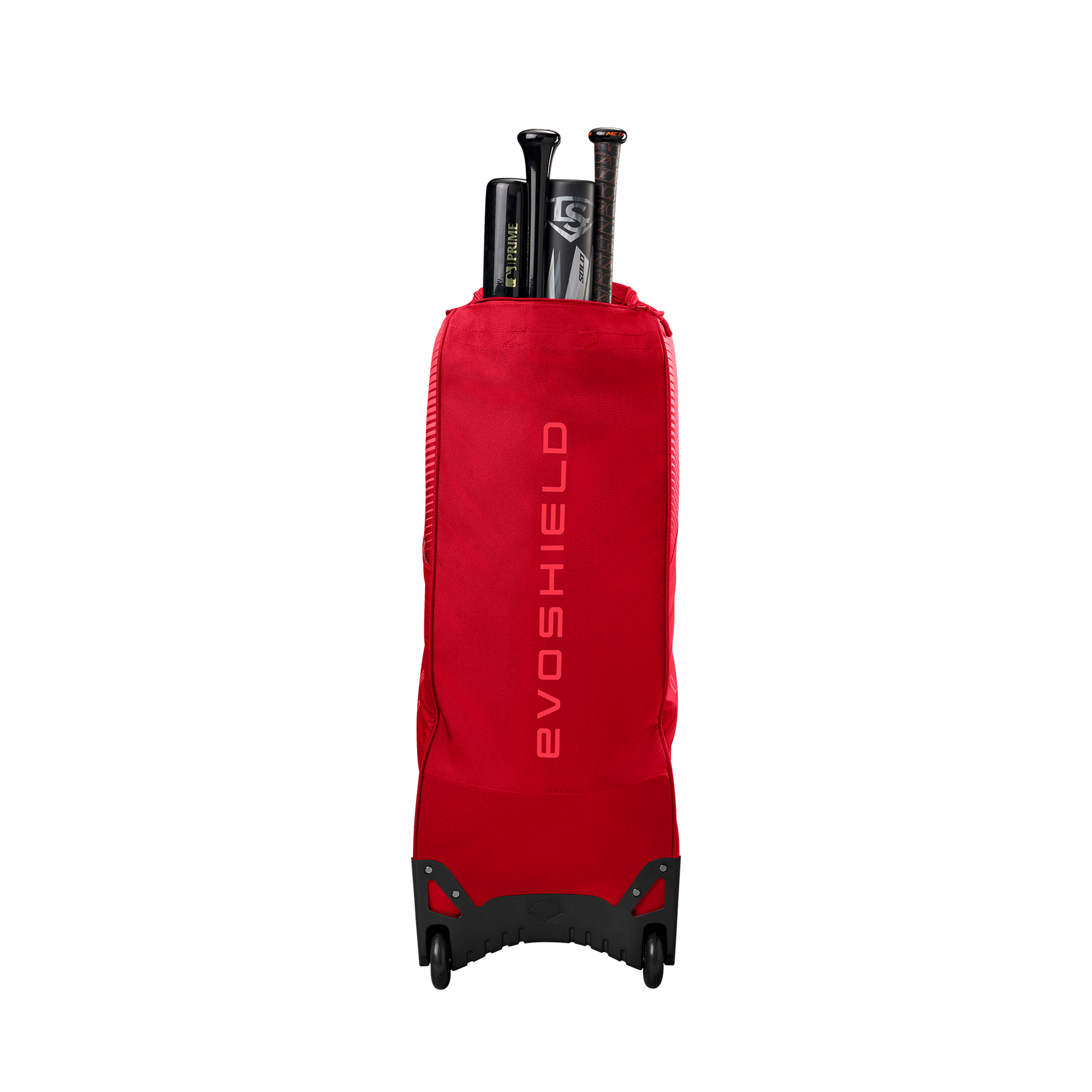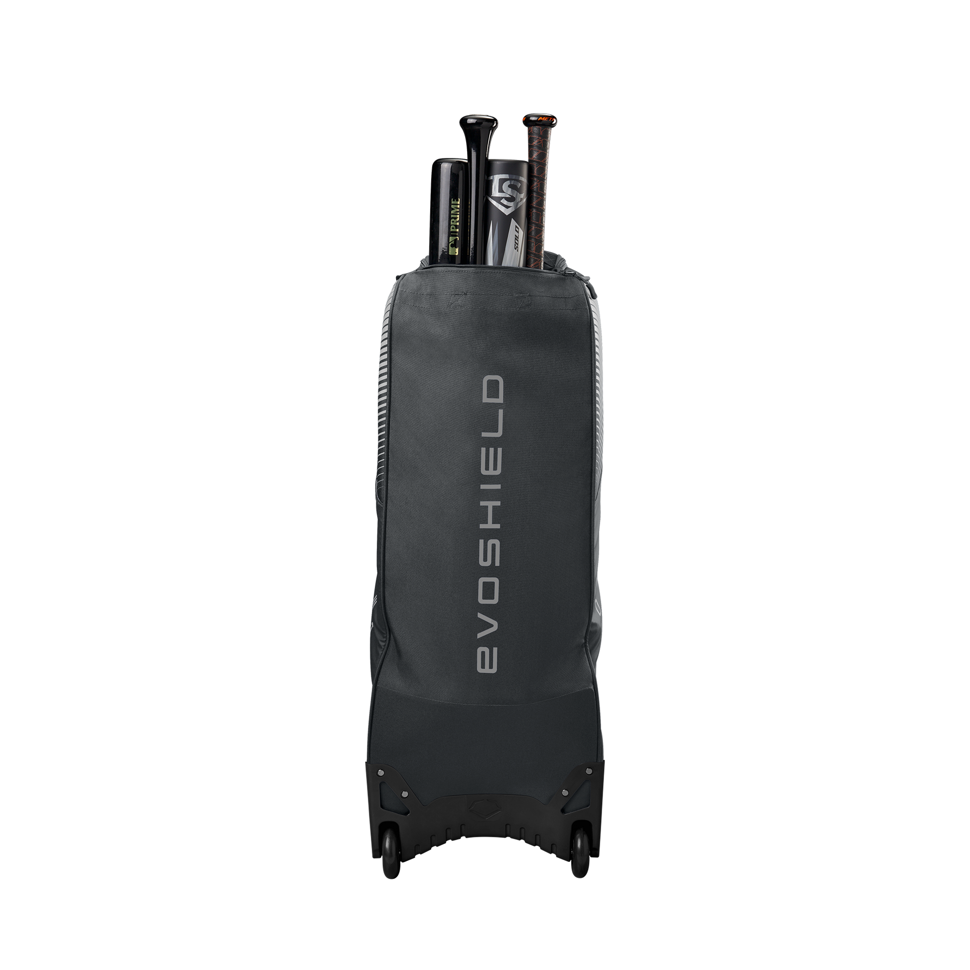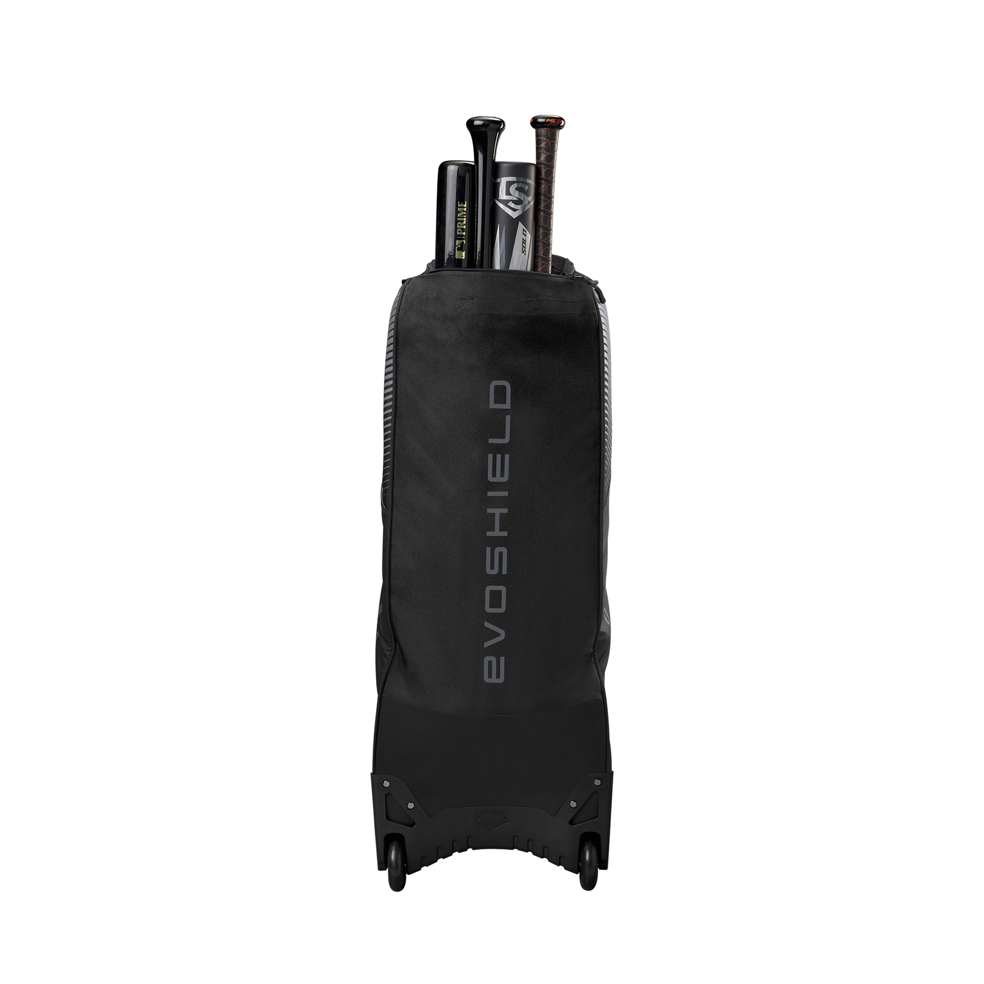 Wheeled bag with massive main compartment and four bat sleeves to keep players and coaches prepared.