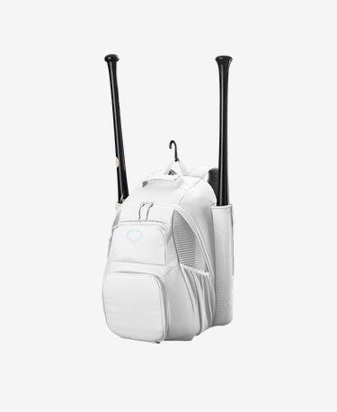 Carry all the equipment needed for practice or game day in the EvoShield Tone Set Backpack, a water resistant bag engineered to keep your gear organized in any elements. Stash your batting helmet, fielding glove and other gear in the large main compartment, then zip your phone in the fleece-lined valuables pocket when it’s time to get to work. Equipped with neoprene bat sleeves, this pack makes it easy to carry two bats to the cages or practice fields. Use the integrated fence hook to secure your bag in the dugout so you can easily access all your equipment on game day.