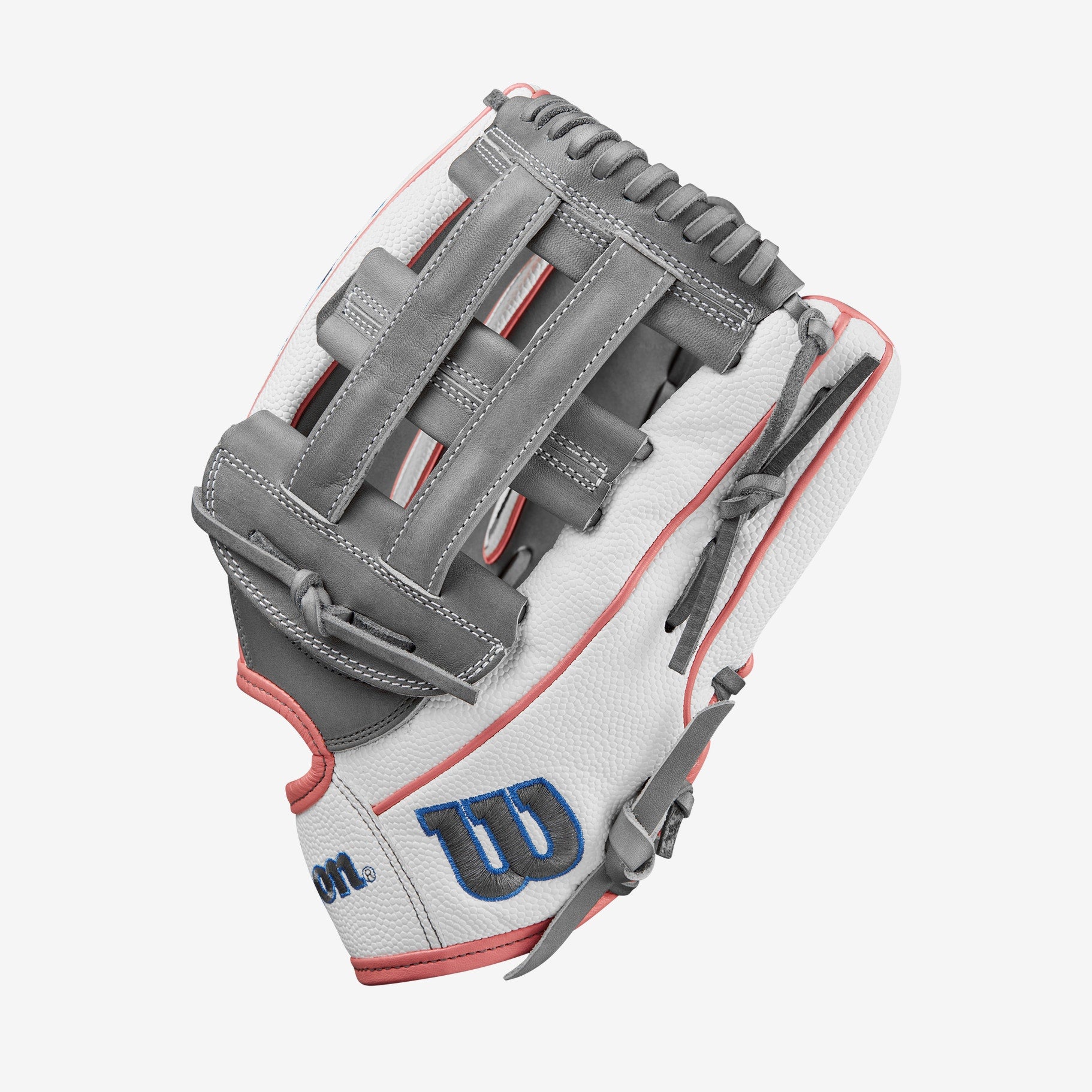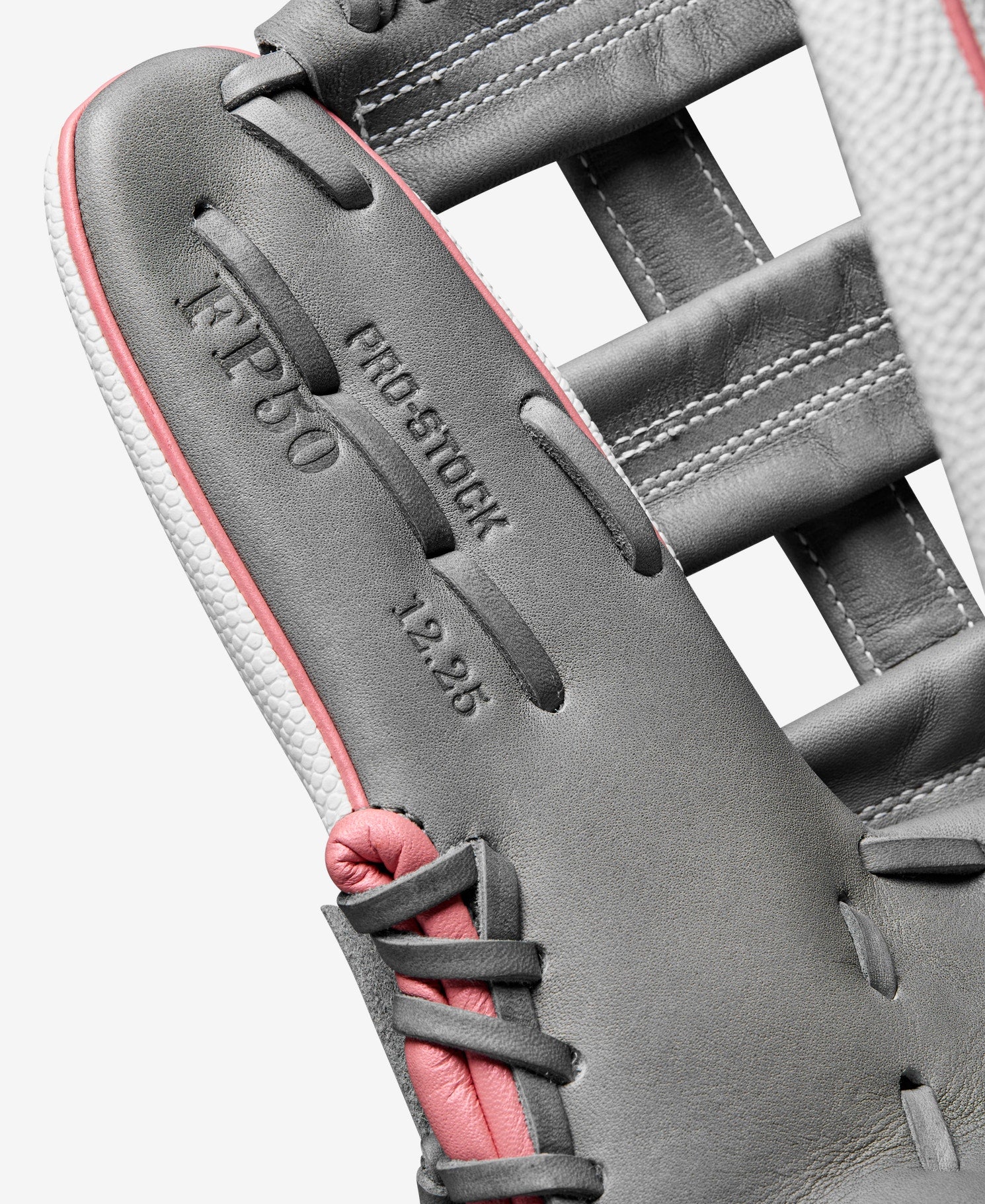 Govern the outfield with the Fall 2024 A2000® FP50SS, a highly maneuverable 12.25” softball glove with lightweight White SuperSkin™. The 12.25” glove is slightly smaller than other Pro Stock® outfield models, offering players more control while tracking down fly balls and line drives on the grass. The sturdy Dual Post Web helps the glove keep its shape while making tough plays, and Metallic Rose Gold accents showcase a hint of flash.