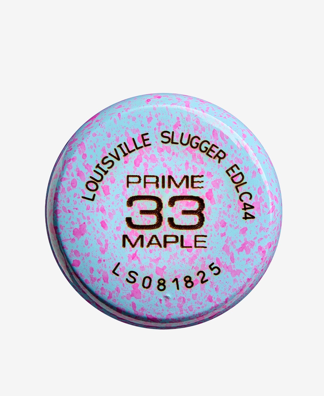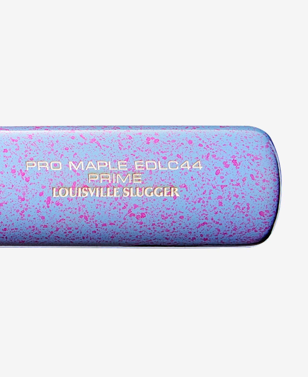 The Pro Prime EDLC44, a maple baseball with a slightly-endloaded swing weight, is perfect for run producers and stronger hitters looking for a more whip-like feel. A light blue base with neon pink splatter creates a lavender-like appearance, complete with white Seamless Decals. A re-engineered surface hardening process, including our Professional Series Finish cured with UV light treatment, results in bats 30% harder than previous Louisville Slugger Prime models.