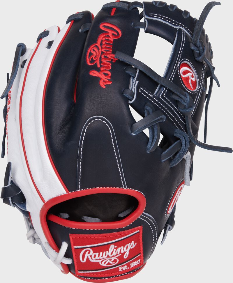 The Rawlings Heart of the Hide 11.5-inch ContoUR Fit infield glove is the perfect glove for players with smaller hands. Featuring navy and white, this glove will turn heads when you head out to the diamond.