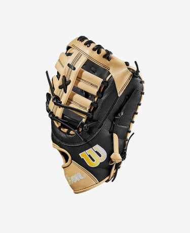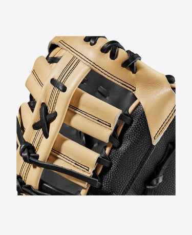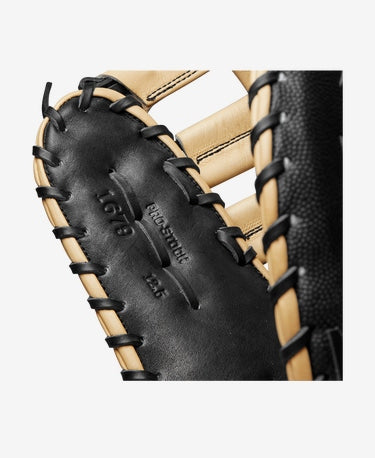 Engineered with a single break point design, the A2000 1679SS first base mitt is designed to play like an infield glove when handling ground balls and pop ups. All new for 2023, the A2000 1679SS checks in at 12.5” with a Single Post Web and deep pocket to scoop any low throws in the dirt or secure any hard-hit line drives down the first base line. Black and Blonde Pro Stock® pairs with Black SuperSkin™ for elite feel and durability, and White and Yellow gradient Bold Logos complete the modern look.