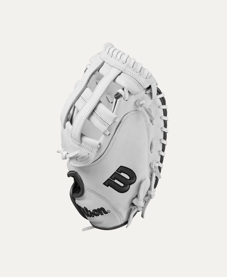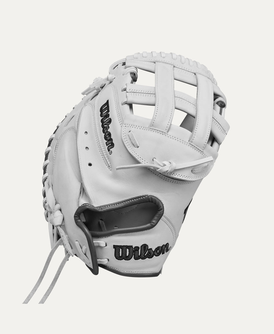 Make it look easy to steal strikes behind the dish with the A1000® CM33, the 33” catcher’s mitt with a White Full Grain leather palm that’s soft enough to take the field while sturdy enough to withstand countless bullpen sessions and in-game innings. The glove’s 33” circumference, thin toe pads and Dual Post Web make it easy to control the strike zone and set targets for your pitcher. Handcrafted in Wilson’s A2000 factory, the A1000 CM33’s Full Grain leather forms to a player’s hand over time for improved comfort while calling a perfect game.