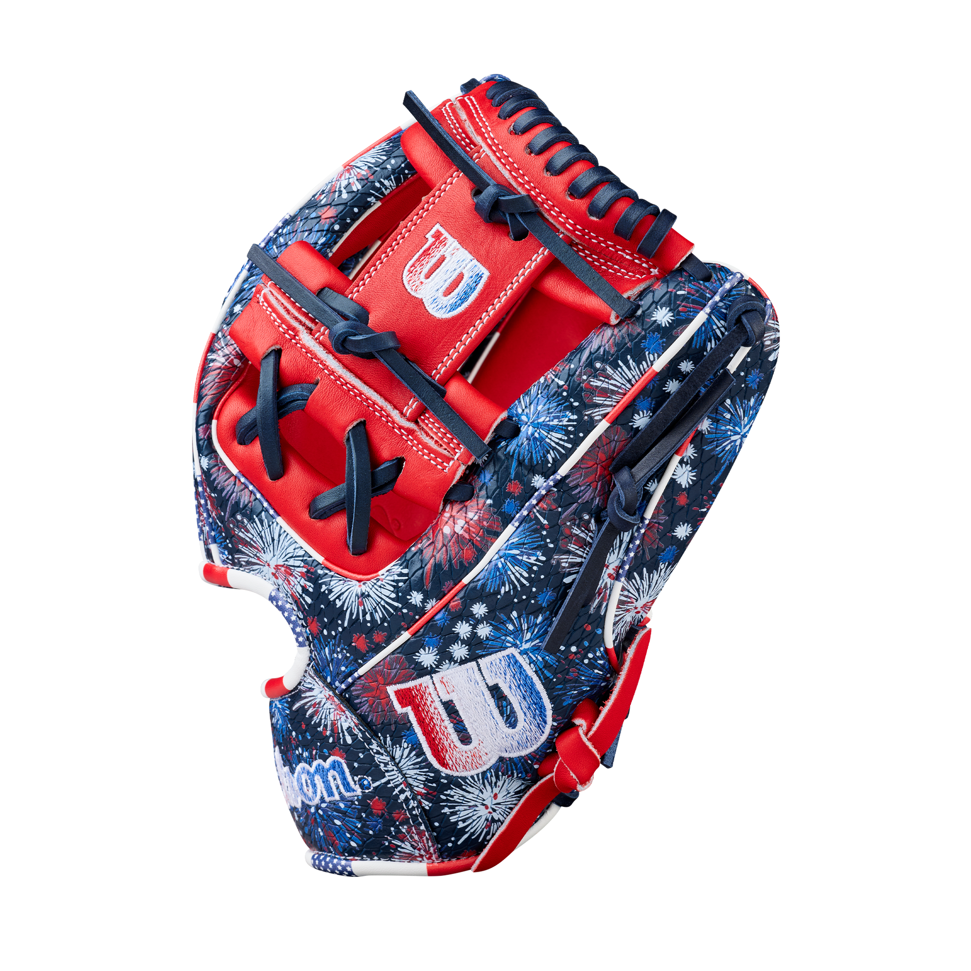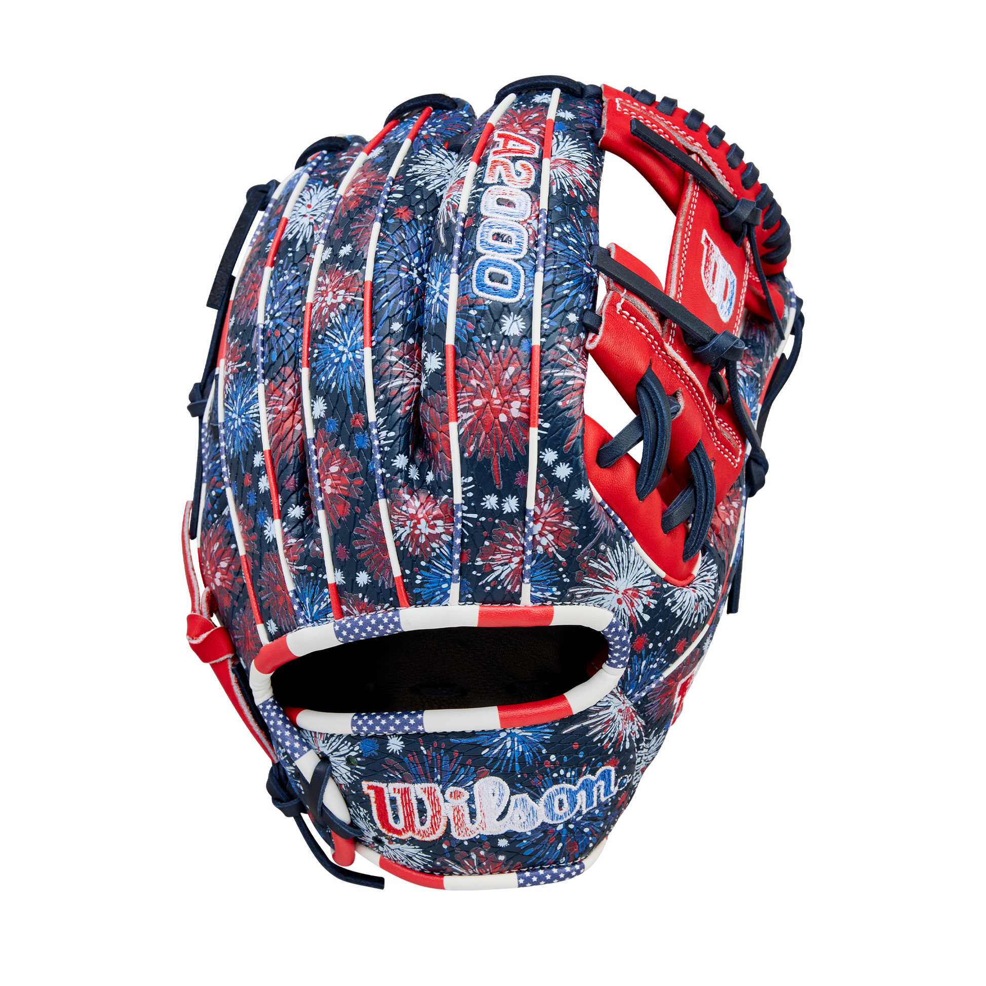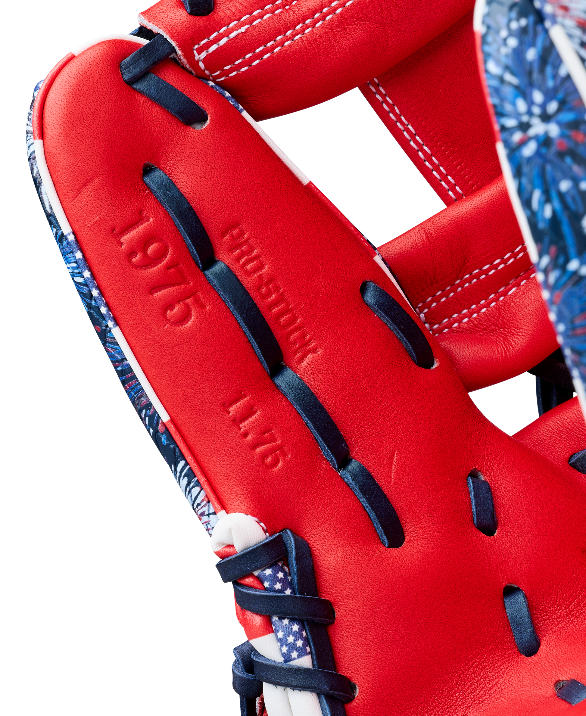 Bring the fireworks to the infield with this custom A2000 1975SS featuring Firework SuperSnakeSkin™ decorated in shades of Red, White & Blue. The 11.75” glove dazzles up the middle or down the third base line, and binding & welting mirrors the Stars & Stripes.