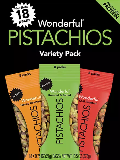 WONDERFUL PISTACHIOS NO SHELLS, .75OZ.